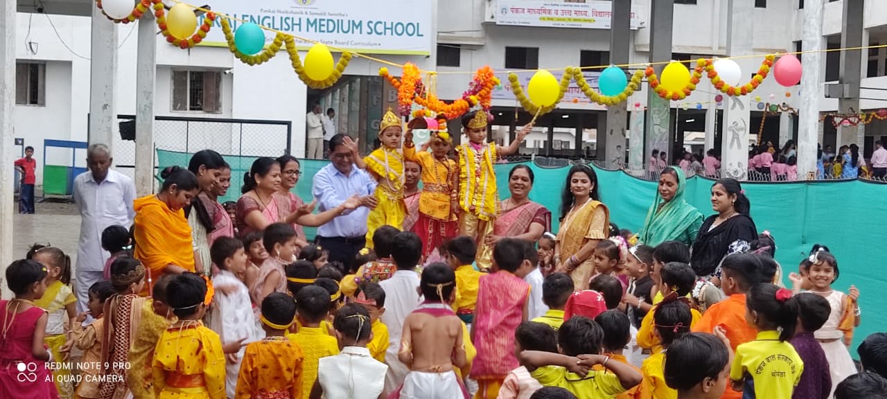 कार्यक्रमाची सुरुवात श्रीकृष्ण प्रतिमेच्या पूजनाने झाली. हे पूजन मुख्याध्यापक एम. व्ही. पाटील व विभाग प्रमुख सौ. मीना माळी यांच्या हस्ते करण्यात आले. दहीहंडी फुटताच “गोविंदा आला रे!” च्या जयघोषाने वातावरण दुमदुमून गेले.