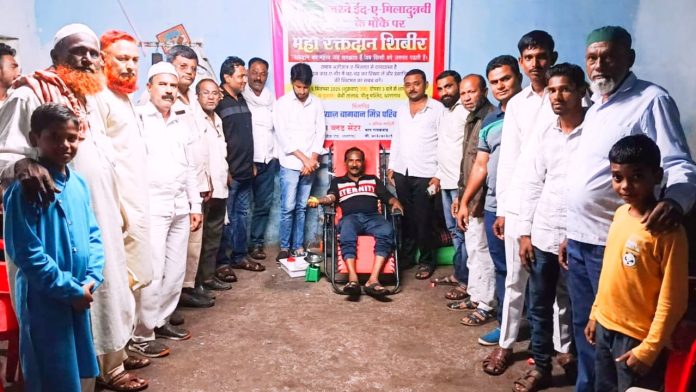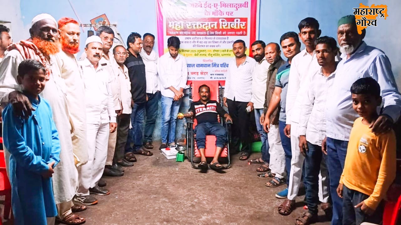 धरणगाव : पवित्र ईद ए मिलाद उन नबी निमित्त आज रोजी पिल्लू मस्जिद येथे भव्य रक्तदान शिबिर आयोजित करण्यात आले. या शिबिराचे उद्घाटन शिवसेना (उबाठा) पक्षाचे जिल्हाप्रमुख तथा, माजी नगराध्यक्ष निलेश चौधरी, राष्ट्रवादी (श.प.) काँग्रेसचे शहराध्यक्ष लक्ष्मणराव पाटील, ॲड. नईम काझी यांसह मान्यवरांच्या उपस्थितीत संपन्न झाले. कार्यक्रमास इरफान शेठ, रहेमान शाह, करीम शेख, नदीम काझी, राजू धनगर, गोपाल पाटील, नंदू धनगर, हमीद पिंजारी, याकूब शेख, समद मन्यार, निसार सय्यद, रणजितसिंह ठाकूर, पत्रकार विनोद रोकडे, गजानन माळी, राहुल रोकडे, हसन मोमीन, महेबुब पठाण, करीम लाला, राजेंद्र वाघ तसेच सर्व समाजातील प्रतिष्ठित मान्यवर मोठ्या संख्येने उपस्थित राहून मानवतेचा, एकतेचा आणि बंधुत्वाचा संदेश दिला. याप्रसंगी लक्ष्मणराव पाटील यांनी पैगंबर हजरत मोहम्मद यांच्या शिकवणुकींचा उल्लेख करत दया, बंधुता, सत्य व मानवसेवेचा आदर्श आपल्या जीवनात जपावा, असे आवाहन केले. रक्तदान हे श्रेष्ठ दान असून यातून जीव वाचविण्याचे पवित्र कार्य घडते, असेही श्री.पाटील म्हणाले. शिबिर प्रसंगी शिवसेना (उबाठा) चे जिल्हाप्रमुख तथा मा.नगराध्यक्ष निलेश चौधरी यांनी सांगितले की, यावेळी असंख्य रक्तदात्यांनी उत्साहाने सहभाग घेतले आणि या माध्यमातून “धर्मापेक्षा मोठा धर्म म्हणजे मानवसेवा” हा आदर्श प्रत्यक्ष कृतीतून प्रकट झाल्याचे दाखवून दिले. कार्यक्रमाचे आयोजन रियाज बागवान मित्र परिवाराच्या वतीने घेण्यात आला. रक्तदान शिबिर यशस्वी करण्यासाठी कार्यकर्ते, तसेच जळगाव येथील रेड प्लस ब्लड सेंटर चे डॉक्टर व कर्मचारी यांनी मोठ्या संख्येने योगदान दिले. कार्यक्रमाचे आभारपर करीम शेख यांनी ईद ए मिलाद उन नबीच्या शुभेच्छा देत सर्वांनी एकोपा, शांतता व मानवतेचा संदेश जपावा, असे आवाहन केले.