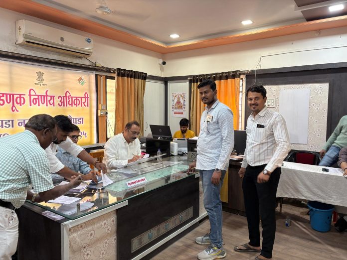 चोपडा : आज दि 17 नोव्हेंबर 2025 रोजी सार्वत्रिक नगरपरिषद निवडणूक 2025 करिता प्रभाग क्रमांक 14 अ मधून राष्ट्रवादी काँग्रेस पार्टी तर्फे घड्याळ या चिन्हावर शुभम समाधान सोनवणे यांनी उमेदवारी अर्ज दाखल केला. पुण्यातून COEP या कॉलेज मधून बी टेक चे शिक्षण घेतल्यानंतरच्या कालावधीत शहरात परतल्यानंतर सतत आपल्या परिसरात जनकल्याणाकरिता सोनवणे हे लढा देत असतात. सामाजिक कार्यात अग्रेसर असलेले सोनवणे यांनी राष्ट्रवादी काँग्रेस पक्षाचे चोपडा युवक शहराध्यक्ष या पदावर कार्य केले आहे.